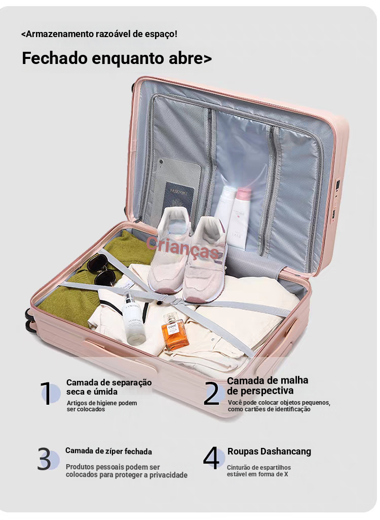 Bagagem multifuncional com capacidade extragrande, mala com pega retrátil e fechadura de combinação